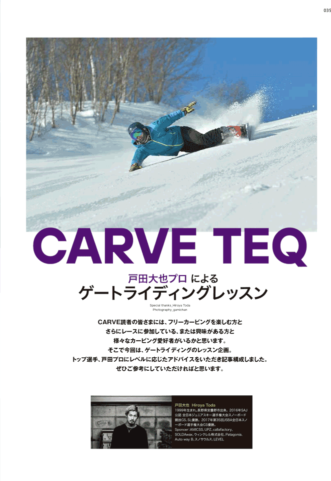 カーヴィングを主軸に置いたスノーボードマガジン「CARVE Magazine」の2021年11月17日発売号。特集は、「カービンググラビア〜CARVING PHOTOGRAPHY〜」、「北京冬季オリンピック直前インタビュー企画」、「CARVING TECHNIQUE MASTER〜さらにカービングをレベルアップする」、「戸田大也プロによるゲートライディングレッスン」、「富田陽介プロによる春雪ライディング講座」、「最新カーヴィングギアカタログ2021」、「PSAプロファイル-AL & SX プロライダーファイル-」、「JSBAデモンストレーターファイル」、「2020-2021大会レポート&リザルト」他。