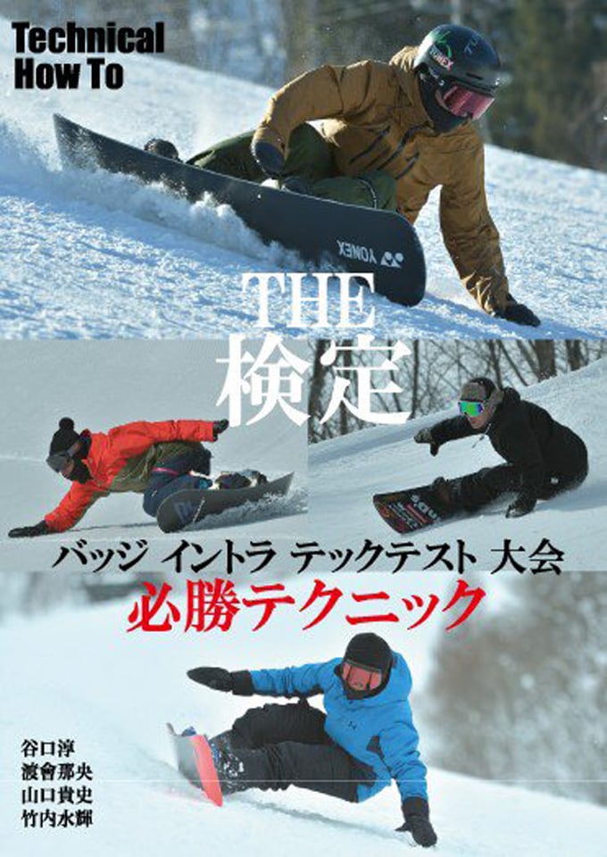 「THE検定 バッジ イントラ テックテスト 大会必勝テクニック」HOW TO DVD。ハイクオリティ技術認定制度の最高峰テックテストに日本で最初の合格者谷口淳と翌年合格した渡會那央と何度も全日本入賞をしている山口貴史、竹内水輝によるバッジテスト、インストラクター検定、テックテストに合格するために各種目のポイント、運動の魅せ方など徹底的に解明。全日本常連ライダー達のフリーライディングパートから、常に考えているターンの意識などのテクニックが満載。これから検定にチャレンジする人からテク選の大会に出場、全日本を目指す人までカービングが好きな人にはたまらない永久保存版のHOW TO DVD。
